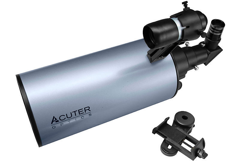 Der neue Acuter Voyager Mak127-Fast ist ein hochwertiges und leistungsstarkes Maksutov Cassegrain Teleskop mit 127mm Öffnung. Dieses kompakte und einfach zu transportierende Teleskop ist ideal für die Beobachtung und das Kennenlernen des Nachthimmels. Da die Abbildung aufrecht und seitenrichtig erfolgt, können Sie auch tagsüber Naturbeobachtungen durchführen. Für einen maximalen Kontrast und hohe Schärfe ist das optische System Multicoated. Sie können mit Ihrem Smartphone über den enthaltenen Smartphone Adapter auch mit dem Teleskop fotografieren.
