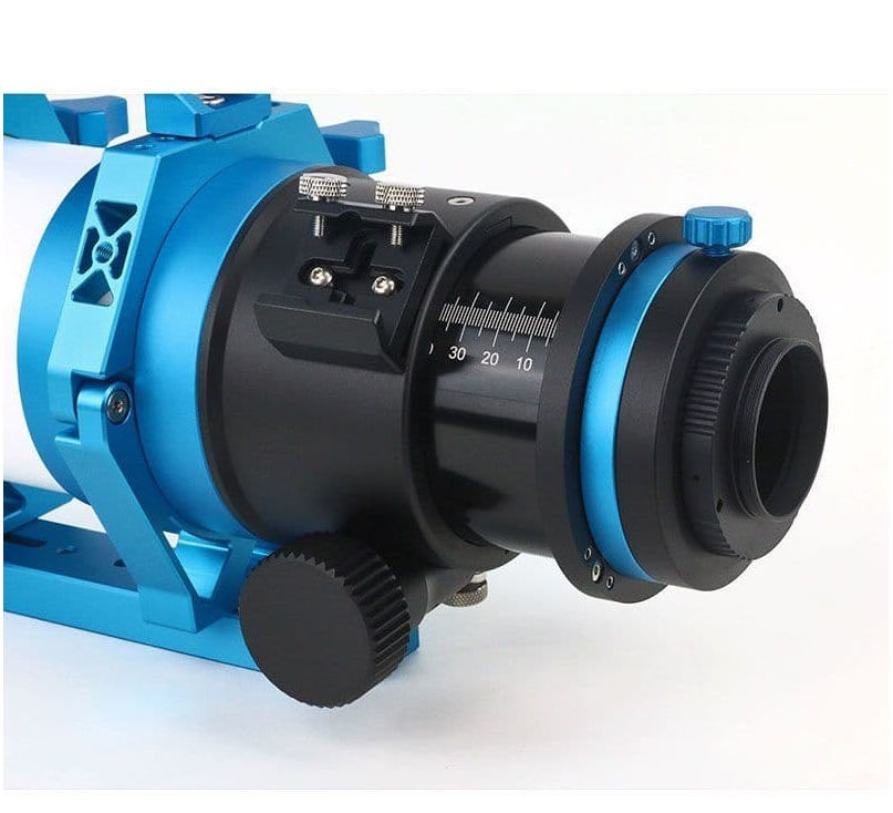 - Ein Satz von 3 hinteren Kollimationsschrauben ermöglicht eine einfachere Neigungsverstellung des Bildfeldes, die in Echtzeit mit Hilfe einer Astrofotografie-Software vorgenommen werden kann. So können Sie Kameras, Filterräder und OAGs bedenkenlos hinzufügen.
