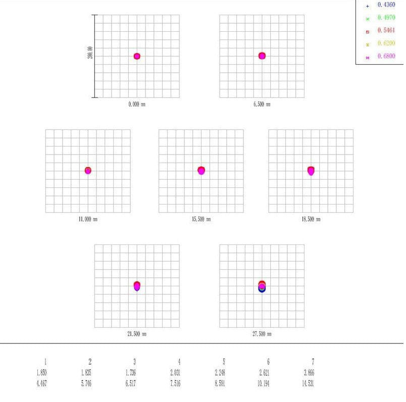 - Der Fokussierer verfügt über 3 Adapter mit Außengewinde zur Auswahl. Die Fokussierung wird erreicht, wenn der Fokussierer um folgende Beträge ausgefahren wird: