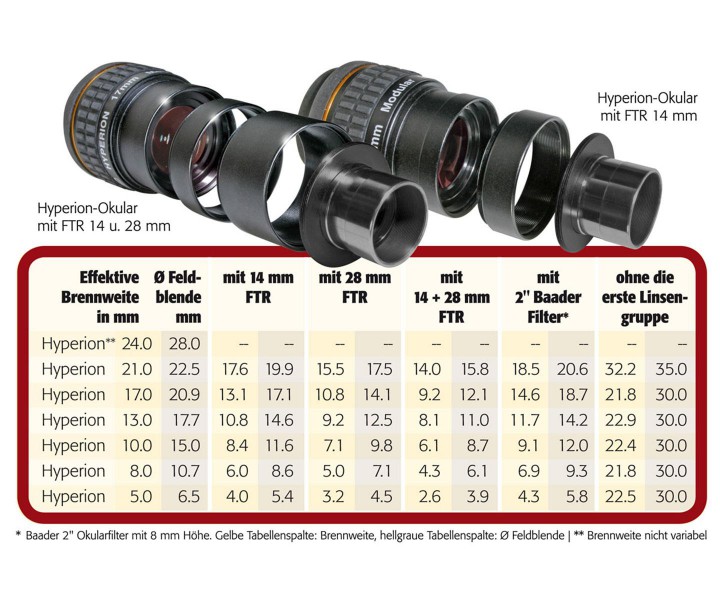 Vorteile und Ausstattungsmerkmale der Hyperion Okulare im Überblick: