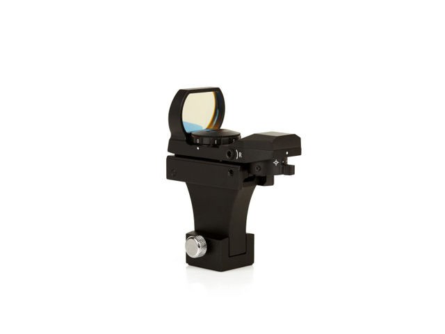 Unser Leuchtpunktsucher ist ein sehr praktische Hilfsmittel zum Anpeilen von Objekten bei Tageslicht oder am Nachhimmel . Das Objekt wird unvergrößert dargestellt, lediglich eine "Zielmarke" wird in die Ansicht projiziert. Der Sucher ist für die Astronomie optimiert jedoch auch für die Erdbeobachtung geeignet. Dazu lässt er sich in 7 Helligkeitsabstufungen regeln. Die Projektionseinheit beinhaltet 4 verschiedene Zielsymbole, die Sie über einen Hebel einstellen können: Einen Punkt, ein Kreuz, ein Kreuz mit kleinem Zielkreis und ein Punkt mit größerem Zielkreis.