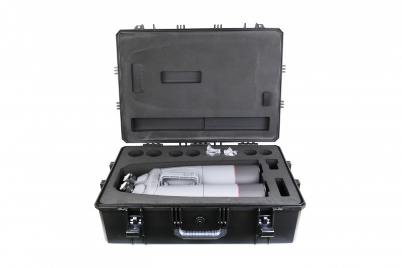 Mithilfe dieses Koffers kann Ihr Fernglas mitsamt bis zu 4 Okulapaaren sicher verstaut und transportiert werden. Das Inlet ist maßgeschneidert für unser 82mm Modell mit 45° Einblick. Die Verschlüsse sind robust gehalten, ebenso der gut dimensionierte Tragegriff.