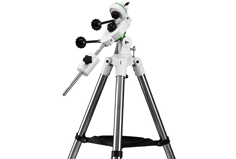 Die Starquest DX Montierung der neuen Generation ist eine hochwertig konstruierte leichte Montierung, die mit ihrer einfachen Bedienung sowohl für den Beginner als auch den erfahrenen Beobachter geeignet ist. Einmal auf den Polarstern ausgerichtet, erlaubt die Montierung einfach die Himmelsobjekte mit Hilfe der biegsamen Wellen nachzuführen. Die Montierung bietet eine maximale Zuladung von 5kg und kommt auf einem stabilen, höhenverstellbaren Edelstahlstativ für maximale Stabilität. Die Montierung ist mit 360° Antrieben in der Rektazensions- und Deklinationsachse ausgestattet. Optional kann ein DC Motorantrieb (Nr. 20940) an der Rektazensionsachse angebracht werden für eine automatische Nachführung. Für die ersten Fotoversuche des Nachthimmels enthält das Set einen Smartphone Adapter.