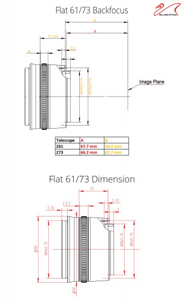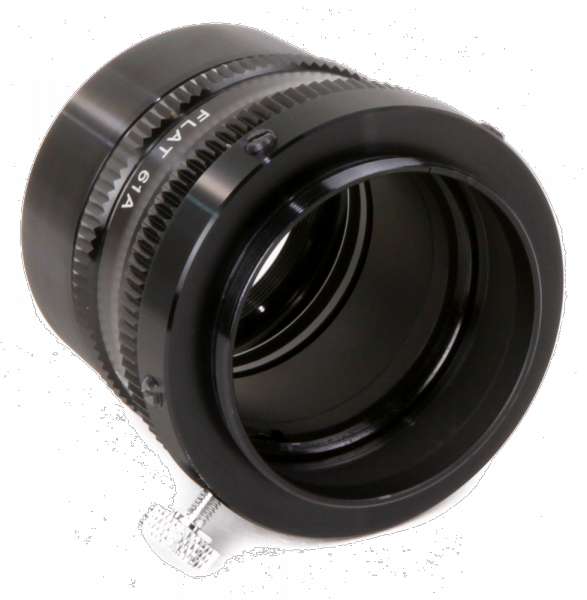Der Flattener ist eine Linse, die das Bildfeld ebnet, da dieses durch die Primäroptik leicht gekrümmt wird. Diese Krümmung bewirkt, dass Sterne zum Rand des Bildfeldes hin auf Aufnahmen weniger scharf abgebildet und "gestreckt" werden. Der Flattener, auch Bildfeldebnungslinse genannt, korrigiert diesen Fehler.