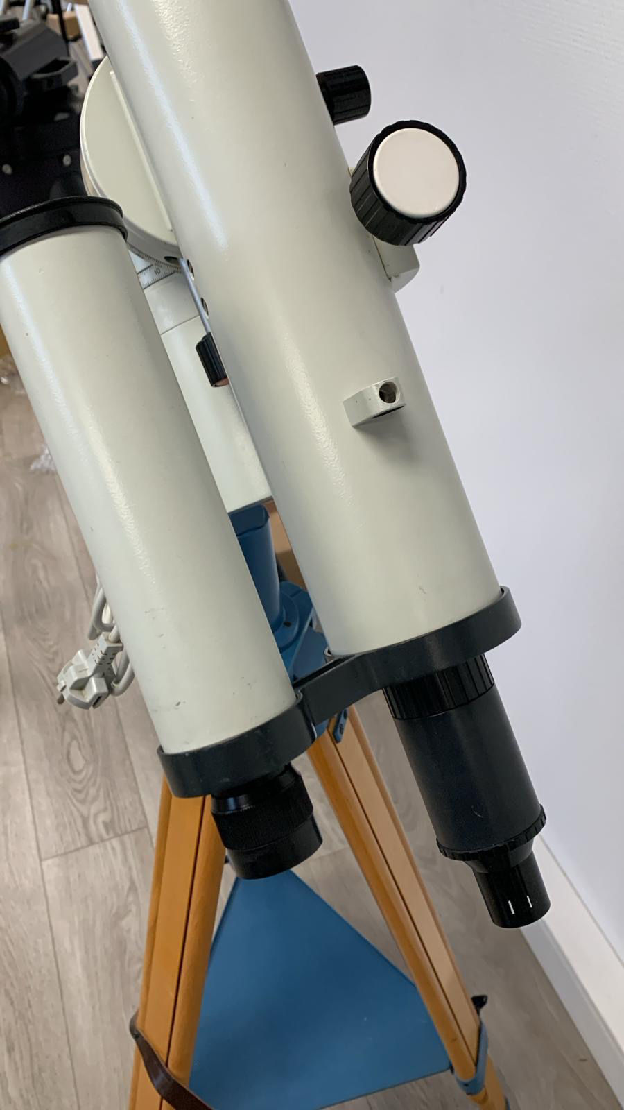 Zeiss Jena Telemator Teleskop , mit 7 x 42 Sucher, M44 Verlängerung, Plastikadapter M44 auf 24.5 m , Stativ mit Ablageplatte, sowie TM Montierung mit 220 Volt Motor, ein fantastisches Schulteleskop