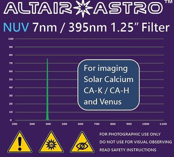 The Altair 395nm NUV filter selectively passes light of the two main Calcium wavelengths emitted by the sun: