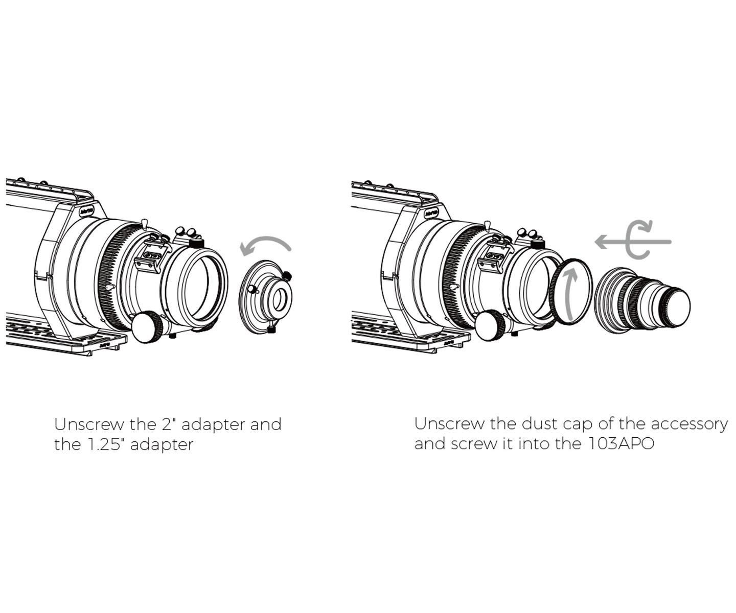 The 1.0x flattener adopts a triplet design and supports a 44mm full-frame image circle. The overall weight is 0.75kg. The back focus from the M48 thread is a standard 55mm. The front thread is M84*1. At the camera end, it is equipped with M68*1, M54*0.75, and M48*0.75 three sizes of adapters, which are convenient for connection. At the same time, it has a built-in M48*0.75 2-inch filter thread, which can be directly installed and used. The overall CNC machined, both end threaded metal caps prevent ash when not in use.