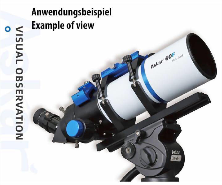 Multi-use in design, the Askar 60F Refractor is wonderful for astrophotography, visual astronomy, and daytime photography! The premium optics within this scope offer stunning images and pristine sights of your favorite celestial objects - everything from our own Moon to deep space marvels like the Orion Nebula. A 1.25"/2" visual adapter comes preinstalled on your scope, enabling use with a user-supplied diagonal and a host of eyepieces. In addition, multiple threaded photographic adapters (M64, M54, & M48) come standard within the box. Once you´ve marveled at the night sky with your very own eyes, easily adjoin your camera to capture the moment forever! Sweetening this deal even more, the outstanding optical performance enables use during daylight hours, either as a spotting scope or for everyday terrestrial photography.