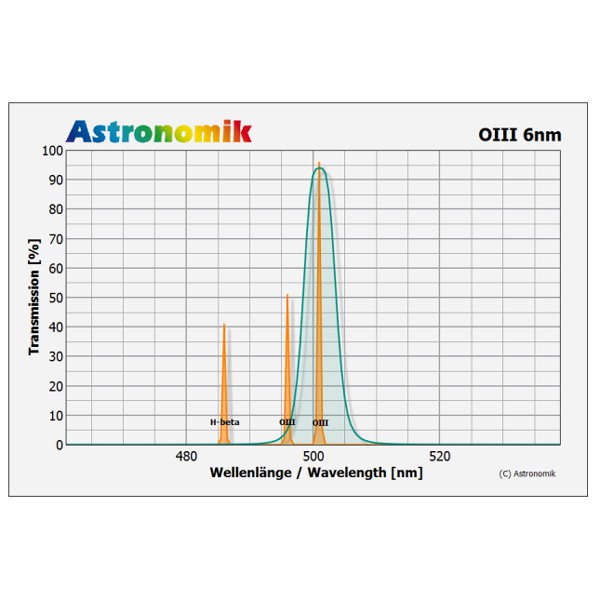 Photographic Astronomik Narrowband-Emissionline Filter OIII-CCD with FWHM and MFR Coating 2"