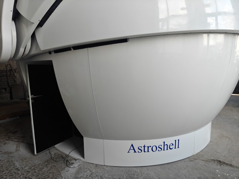 The Clamshell dome is the preferred observatory dome for LASER COMMUNICATION and BIG-APERTURE telescopes. It is not necessary to synchronize the telescope with the dome. Both "shutters" can be moved and positioned independently to allow wind shading of the optical group.