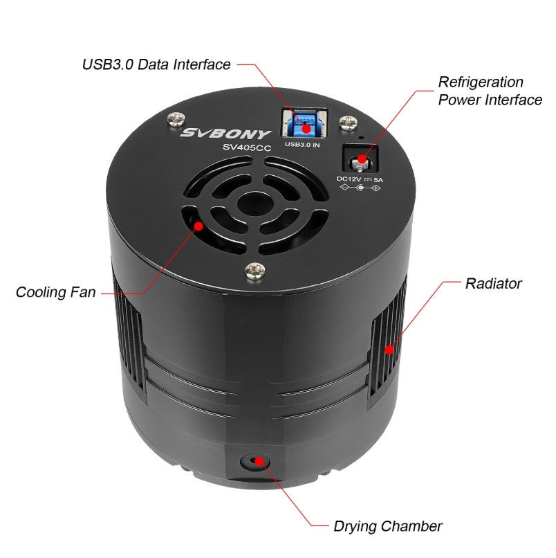 The Svbony 405CC brings professional astrophotography within reach: with its cooled SONY IMX294 colour CMOS sensor, 4/3" format and high quantum efficiency, it delivers noise-free, brilliant deep-sky images – even under skies affected by light pollution. Active cooling ensures stable temperatures, whilst USB 3.0 transfer and AR-coated optics guarantee maximum image quality. Ideal for ambitious astrophotographers who want to capture more detail, more depth and more colour from the universe.