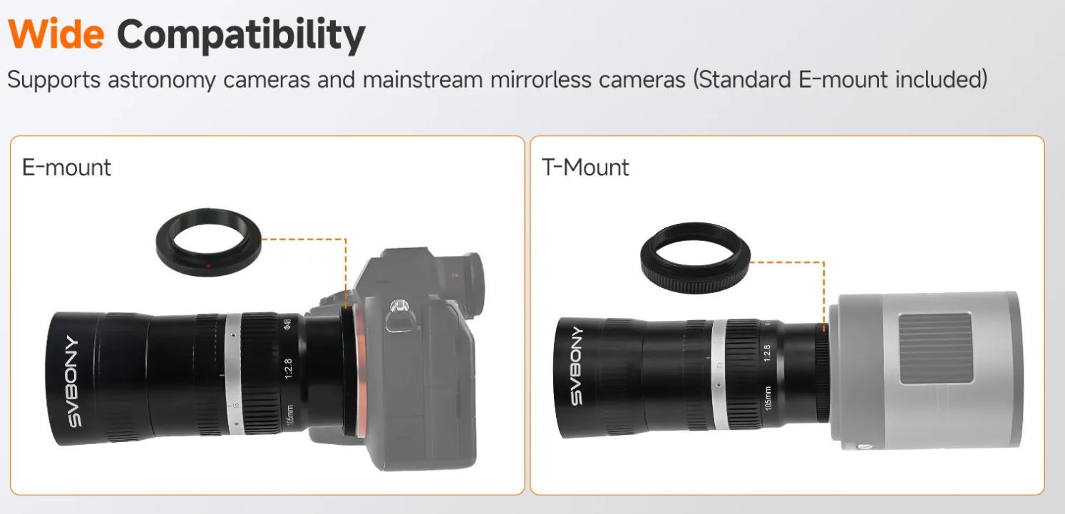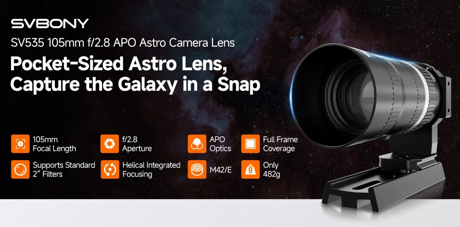 The large f/2.8 aperture enables bright, high-contrast astrophotography.