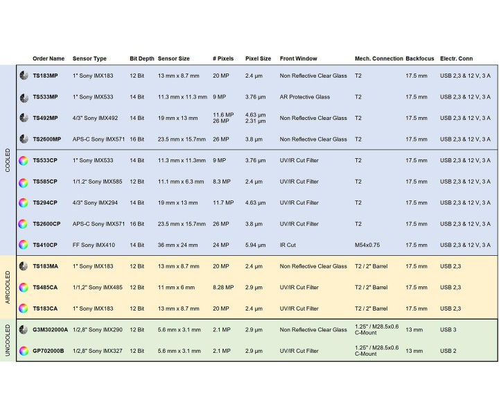 | Sensor type | SONY Exmor CMOS IMX183CQJ-J sensor, color, back-illuminated |