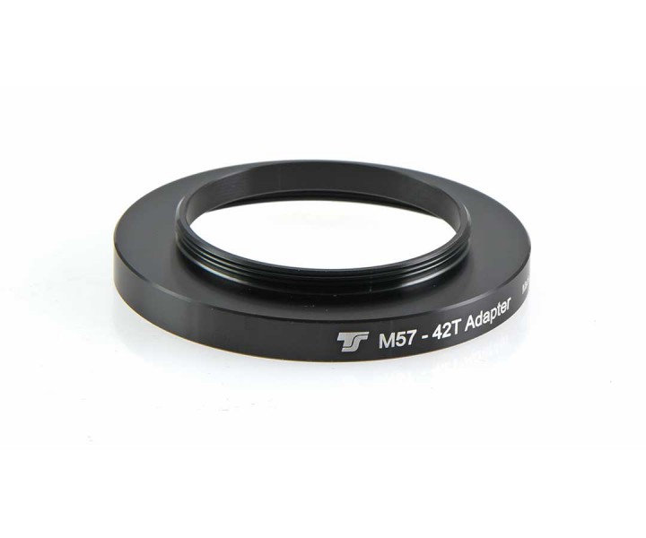 The adapter allows attaching SLR cameras to the male M57x0.75 thread via T2-rings. Thus you can connect the cameras, as an example, directly to the TS-Optics 2" SuperView eyepieces.