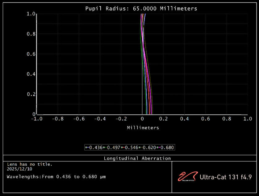 | Technical Data | Lens Type 5-Element Advanced Petzval Lens Elements Super ED Glass x2, ED Glass x1, Lanthanum Glass x1, X-Element x1 Focal Length 648 mm Diameter 131 mm Focal Ratio f/4.9 Image Circle 60 mm Focuser WIFD R&P Focuser, Compatible with EAF Focuser Travel 0-20 mm Adapter Included Sensor Tilt Xterminator Rotator, M68, M54, M48 Camera Adapters Optional Flattener No Flattener Required T-Mount Support Canon EF, RF, Nikon F, Z, Sony E, Pentax K, MFT (M4/3), FUJI X Camera Format Medium Format, Full Frame, APS-C, M4/3 Dovetail Type Losmandy Tube Length 650 mm - 785.5 mm OTA Weight 9.95 kg / 21.94 lbs |