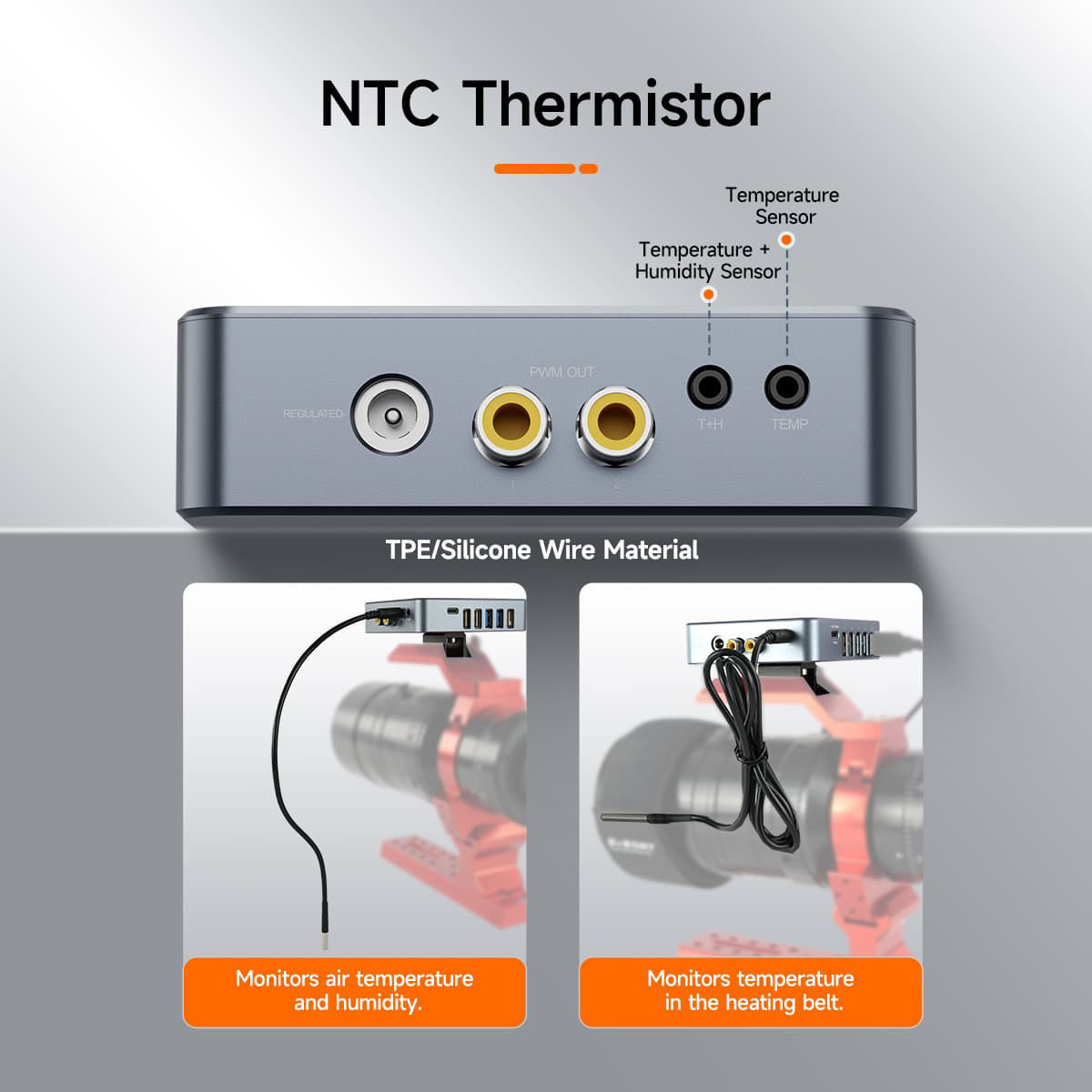 1.Integrating environmental data (temperature, humidity, and dew point) collected by temperature and humidity sensors and automatically adjusting the heat intensity of your Dew strips for optimal performance.