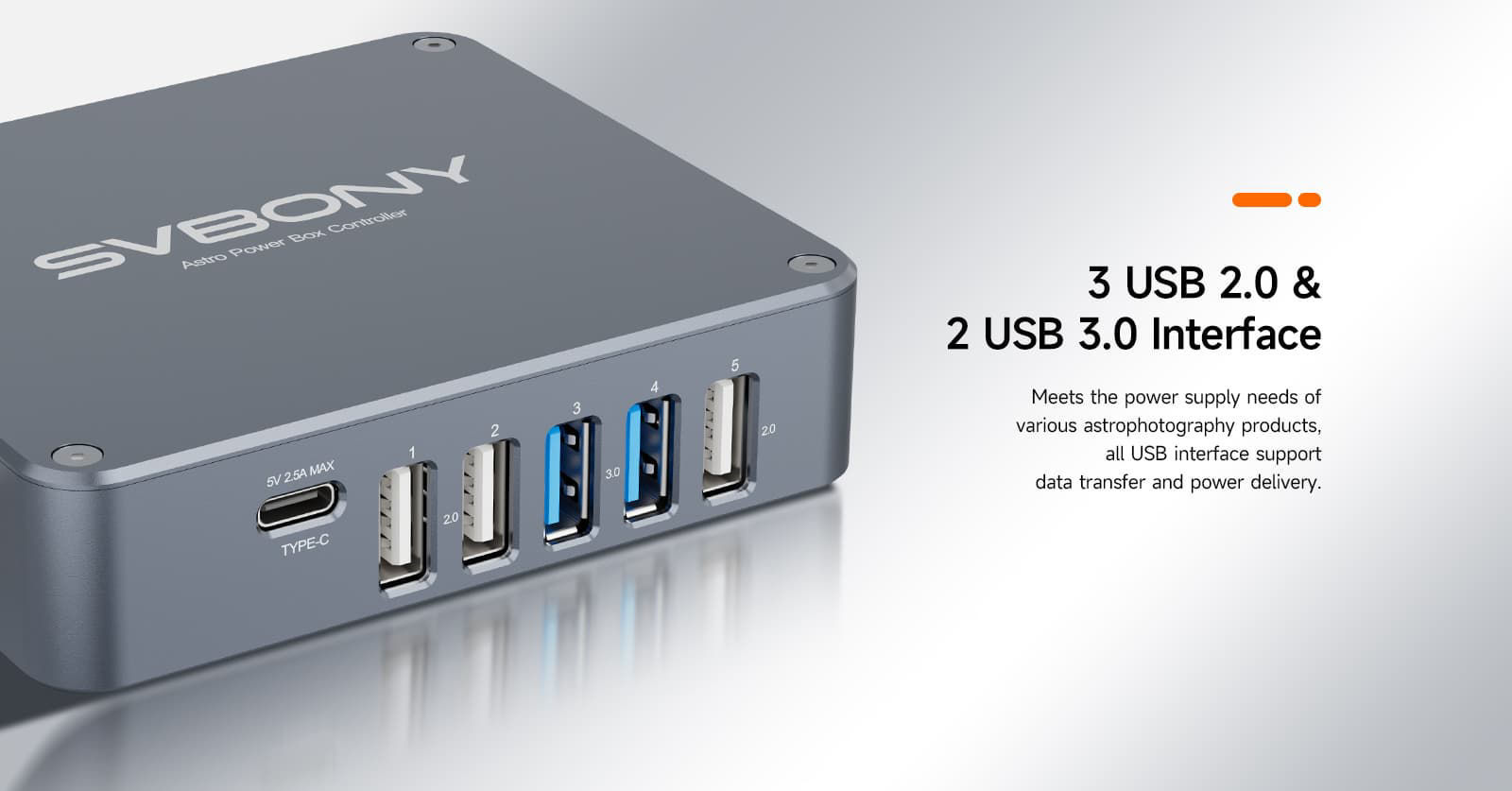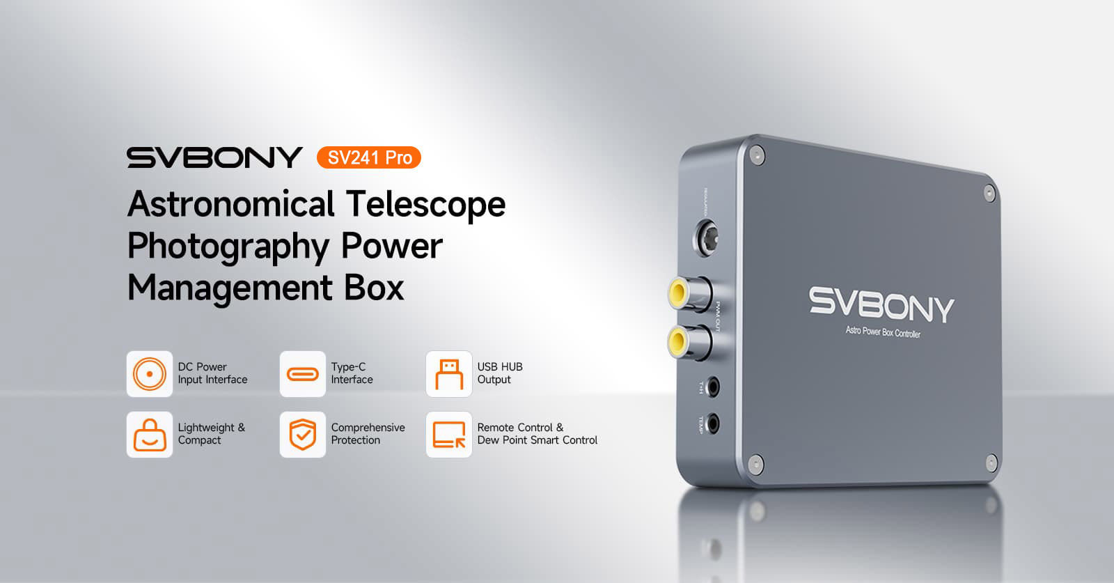 If you're tired of the complexities of multiple power packs and tangled cables, the SV241 Pro power controller is the solution you've been looking for. Our philosophy was to create a compact enclosure that delivers ample current and USB data while maintaining your cables organized!Deliver power to your mount, cameras, filter wheel, and all your essential astronomy equipment, thanks to its versatile multiport design. With this astro power controller, you can fully control your astronomy eqipments.