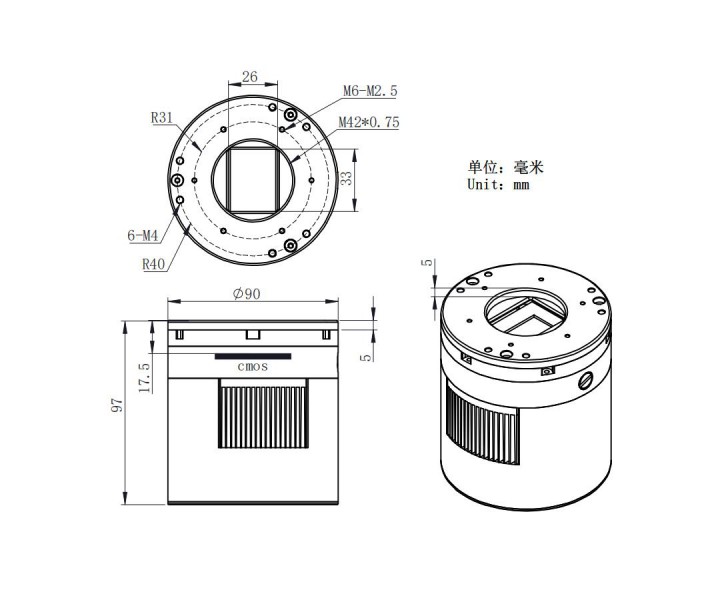 - Distance T2 connection thread (female thread) to camera sensor: 17.5 mm
